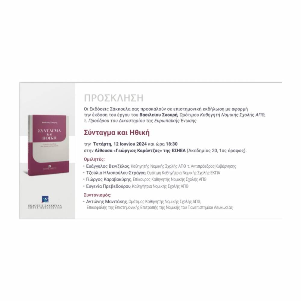 Β. Σκουρής, Σύνταγμα και Ηθική, 2024.